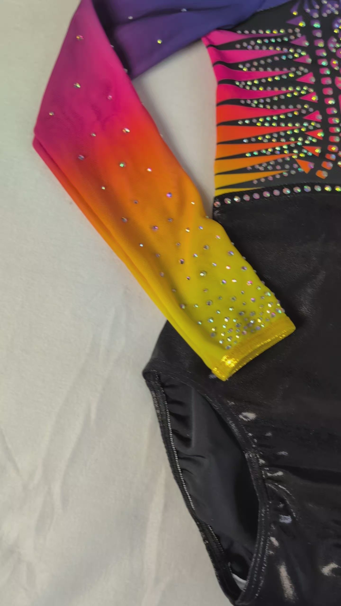 ✨ Justaucorps de gym fille lumineux | Manches longues | Dégradé multicolore à strass | Entraînement & compétition | Brillance maîtrisée, élégance et performance